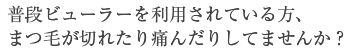 まつ毛が抜けたり、切れたり、などの原因は毎日使用するビューラーによる 影響が多いようです。まつ毛カールは一度かけると約2ヶ月カールが 持続します!!当サロンでは、まつ毛の生え方や目の形・まぶたを見て、 お客様と相談したうえで施術を行います。今まで、満足いかなかった方にも 大変、好評いただいてます。